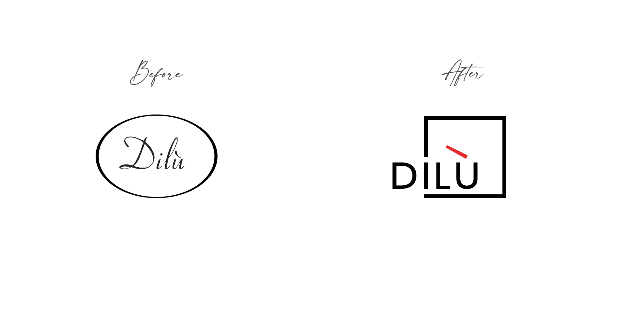 Il vecchio logo DILù, nato agli albori dell’attività, non rappresentava più l’azienda e i prodotti attuali: orologi composti da linee semplici ma d’effetto, da finiture eleganti e dal richiamo materico.
